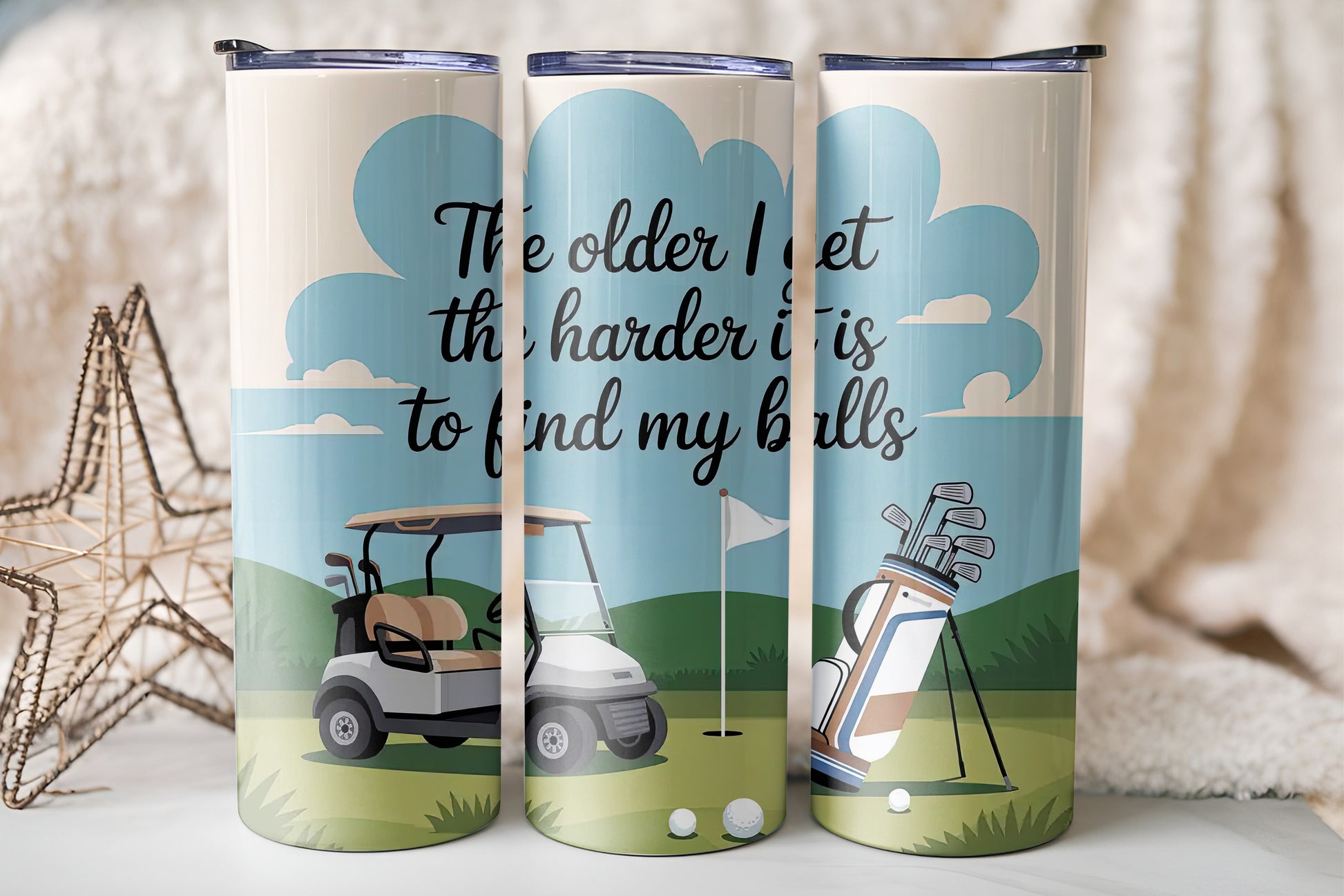 Hit the greens in style with this Golf Tumbler — the perfect companion for early tee times, long drives, and post-round chill sessions. Designed for golf lovers, this tumbler combines sporty charm with everyday functionality, keeping your drink perfectly hot or cold no matter where the game takes you.