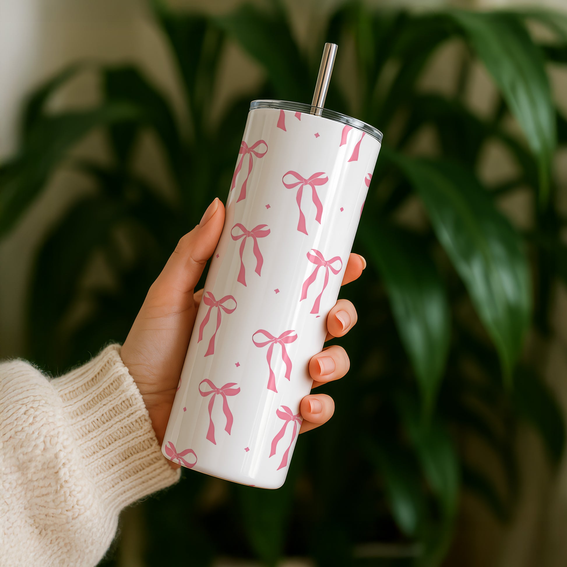 Add a touch of cute and classy charm to your daily routine with our Bow Patterned Tumbler. Featuring an elegant all-over bow design, this stainless steel tumbler is perfect for anyone who loves timeless, feminine details. With double-wall insulation, it keeps your drinks hot or cold while looking effortlessly stylish.